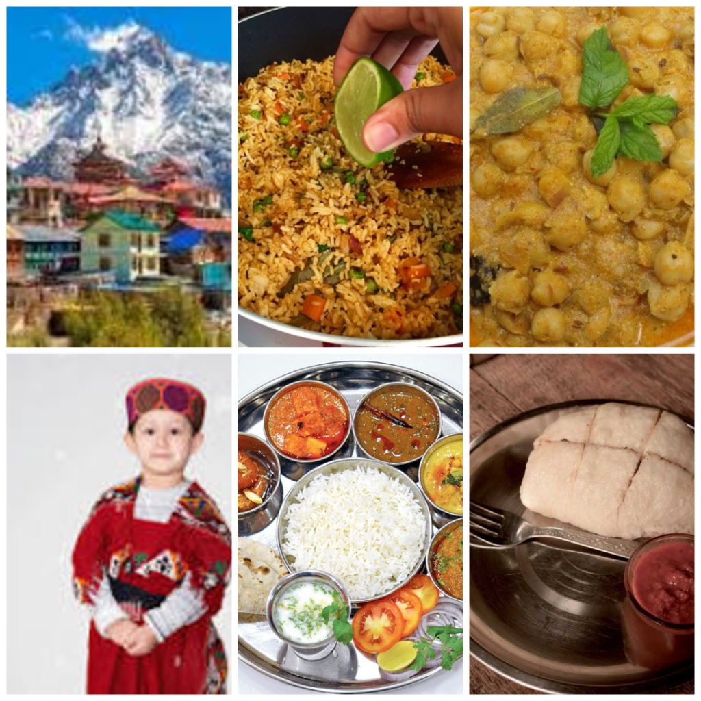 हिमाचल प्रदेश का भोजन स्थानीय अनाज, सब्जियों और मौसम के अनुसार तैयार होता है। यहाँ के कुछ लोकप्रिय व्यंजन हैं: